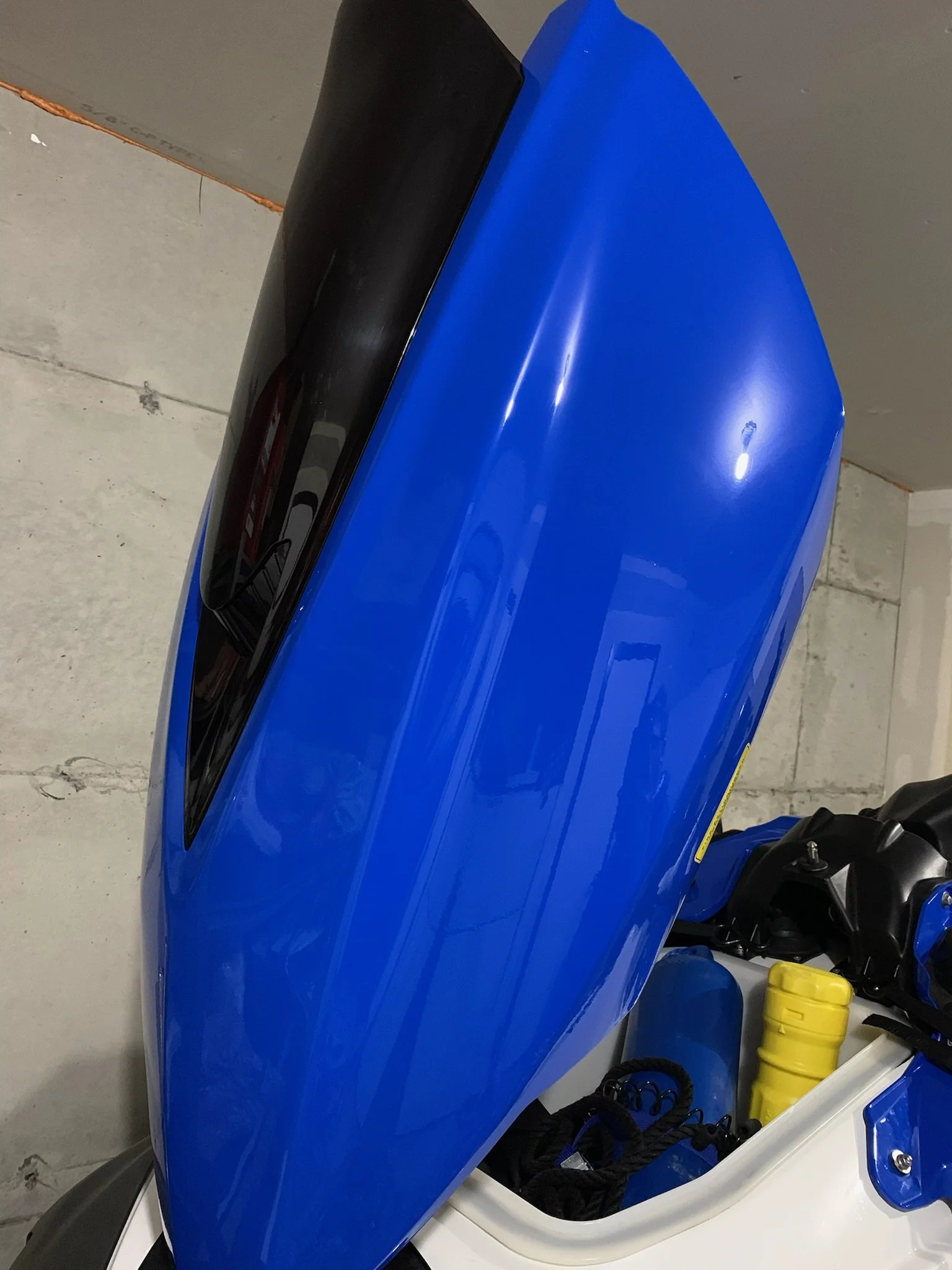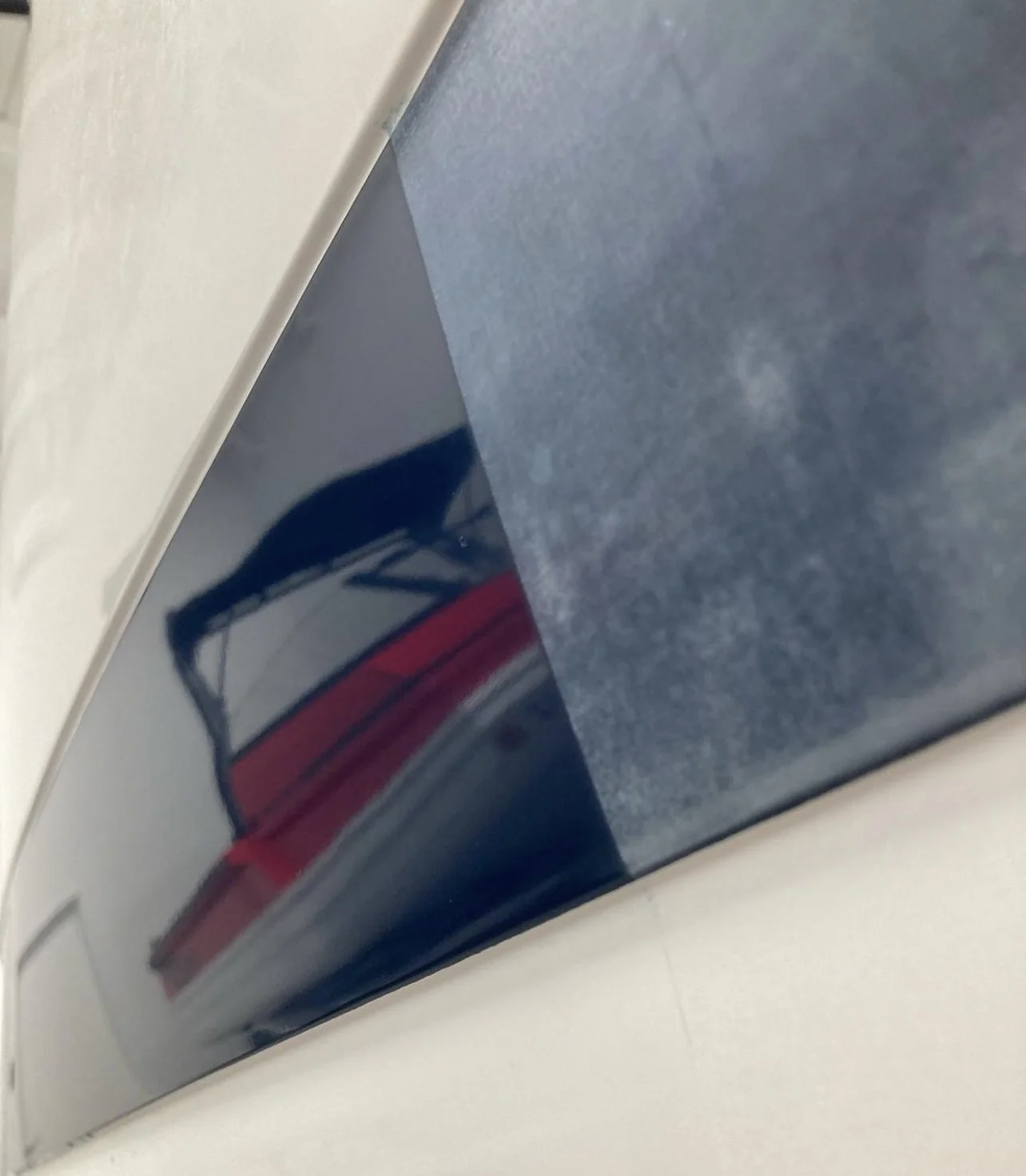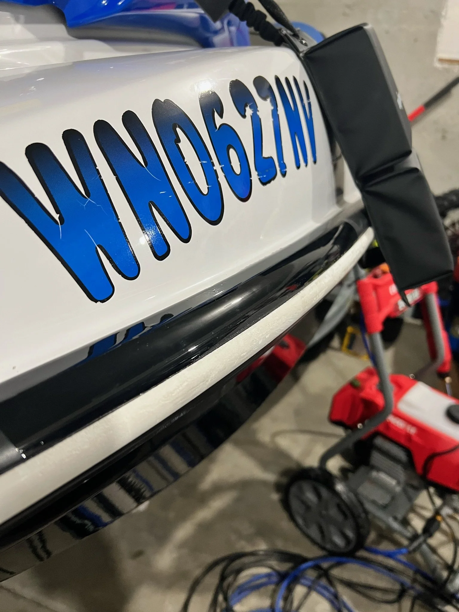 Gloss black vinyl wrap of gunwale.